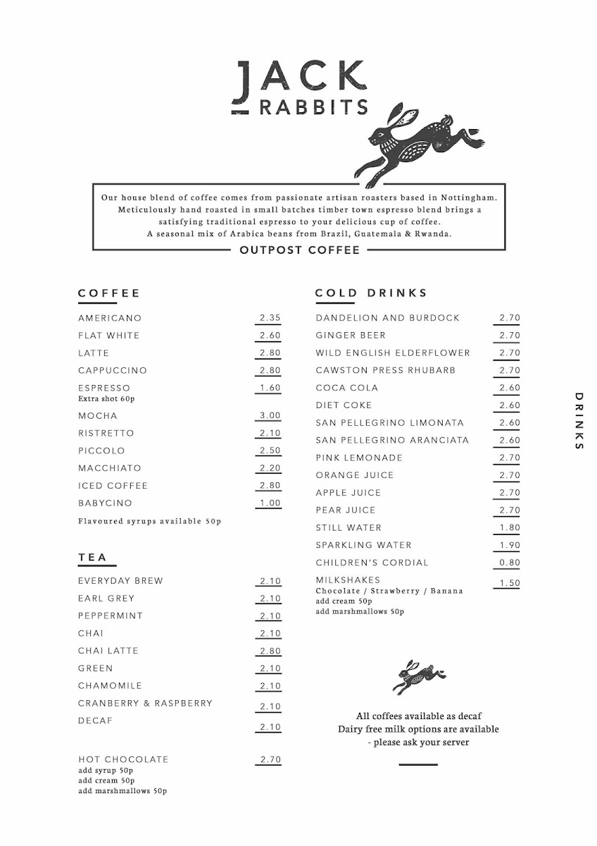 Welcome to Jack Rabbits Ashbourne, an inviting café nestled in the heart of Ashbourne at 10 St John St, DE6 1GH, United Kingdom. This charming spot has quickly made a name for itself among locals and visitors alike, offering not just food but a delightful dining experience. With a reputation for quick service and a warm, friendly atmosphere, Jack Rabbits is the place to unwind over delicious meals that cater to various tastes.